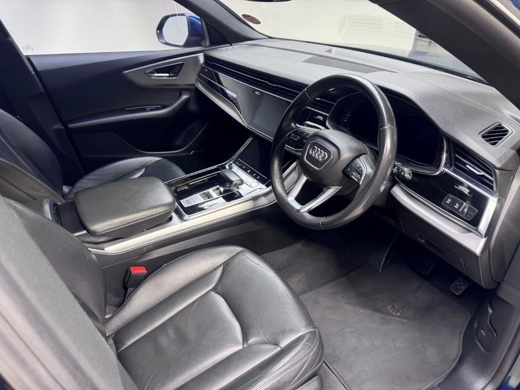 With features like S-line kit, Extended Service plan, Towbar, Xenons, Reverse Camera, Bluetooth, Satnav, Keyless start, MFS, The 2019 Audi Q8 55 TFSI quattro S-line is a powerful, stylish and tech-forward SUV combining sporty design with refinement. Its strong V6 engine and quattro grip offer smooth performance, while the cabin rivals Audi’s flagship saloons. The S-line package adds visual and dynamic flair
